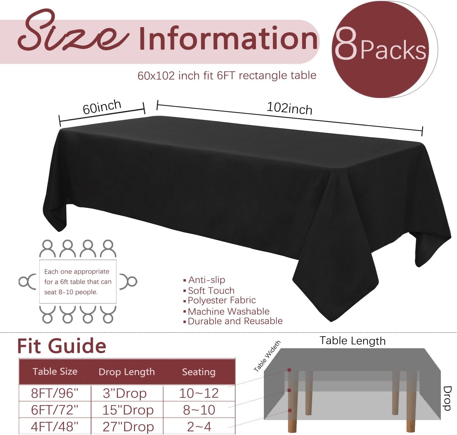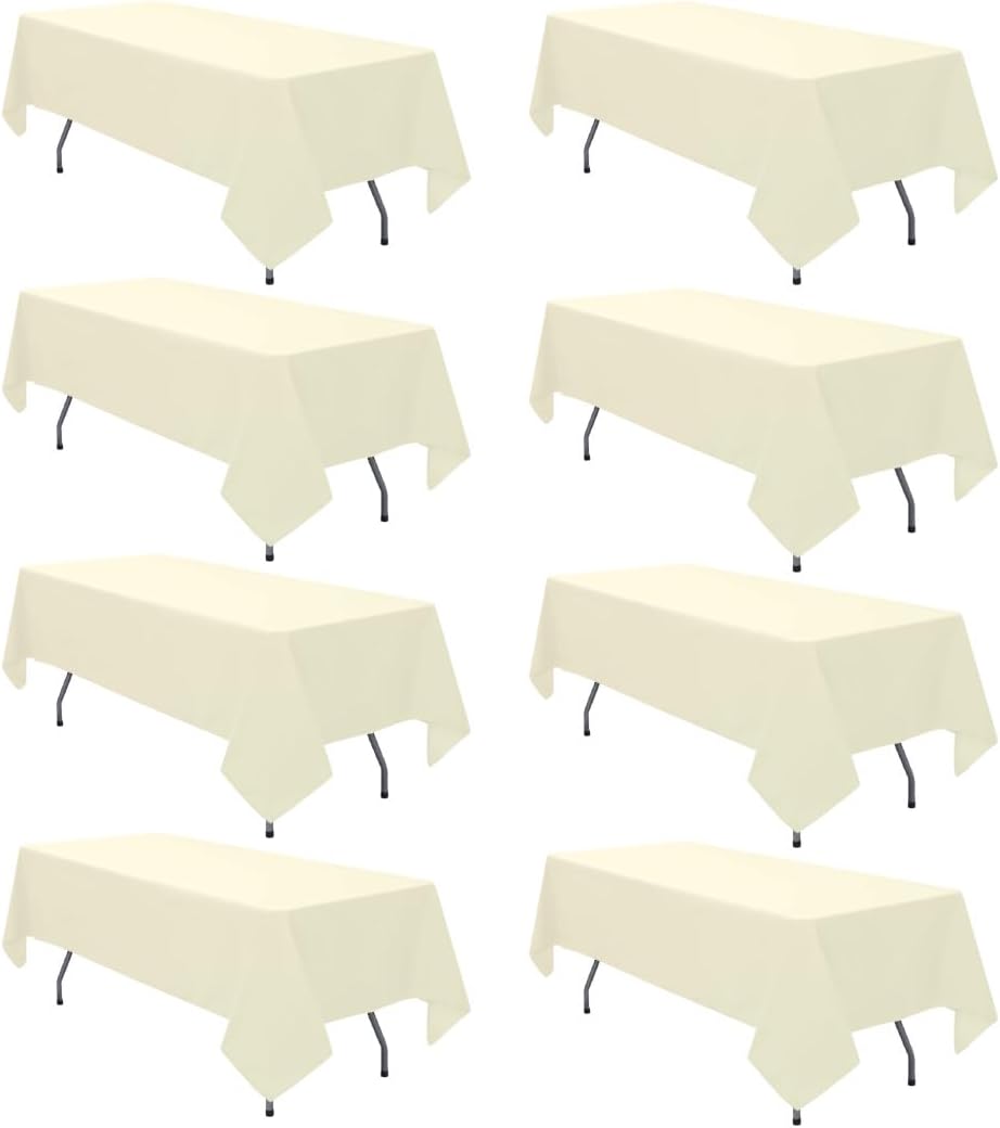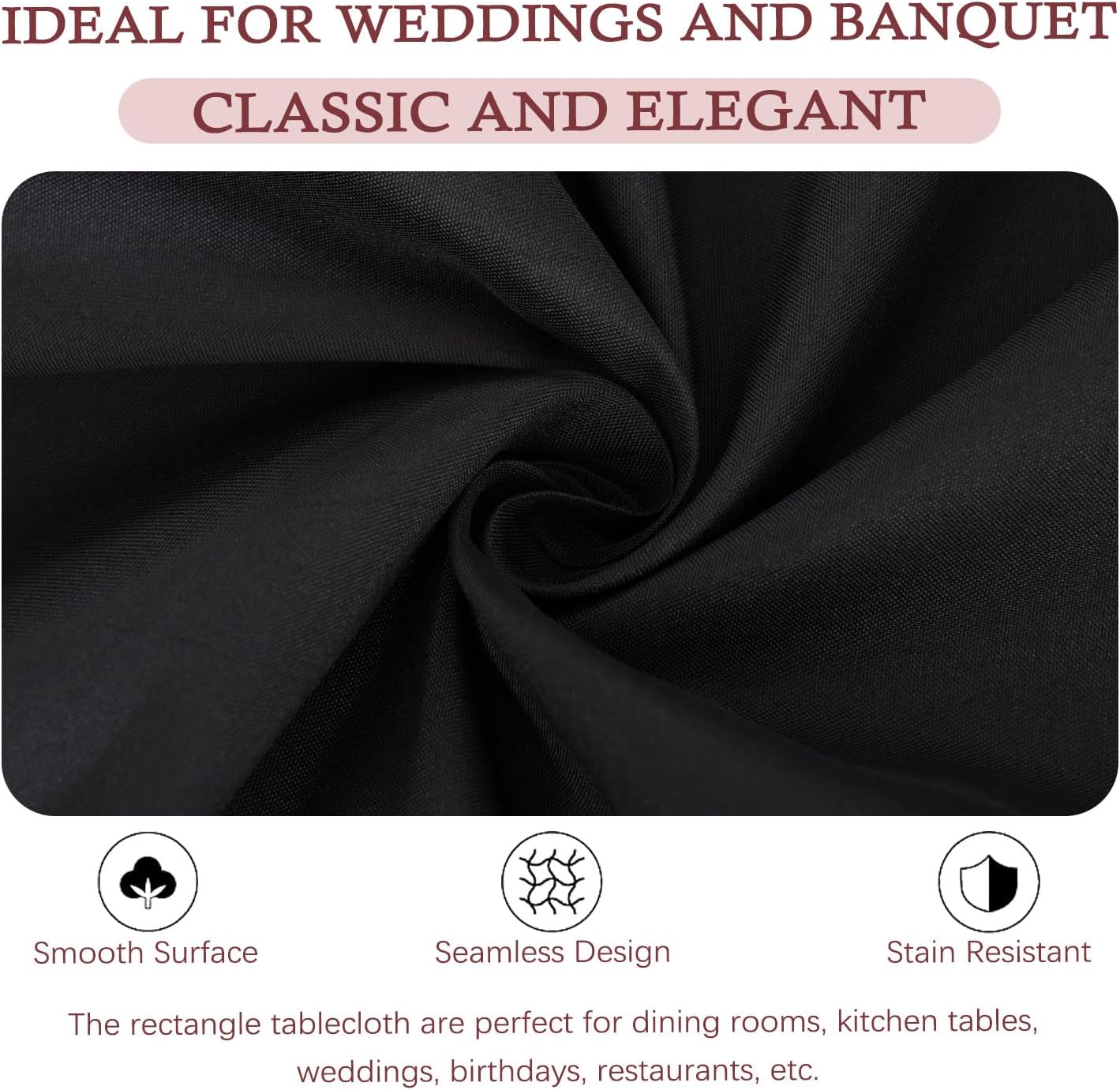 8 Pack Black Tablecloth 60 x 102 Inch Polyester Table Cloth for 6 Foot Rectangle Tables, Wrinkle Resistant Washable Decorative Fabric Table Covers for Wedding Party Banquet Buffet and Camping