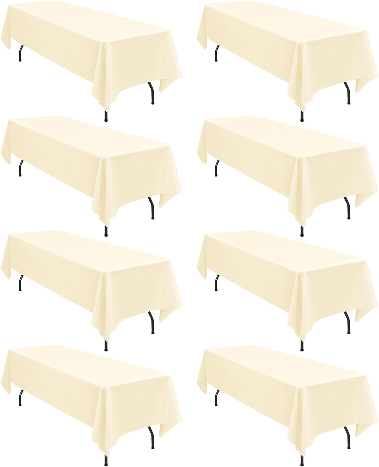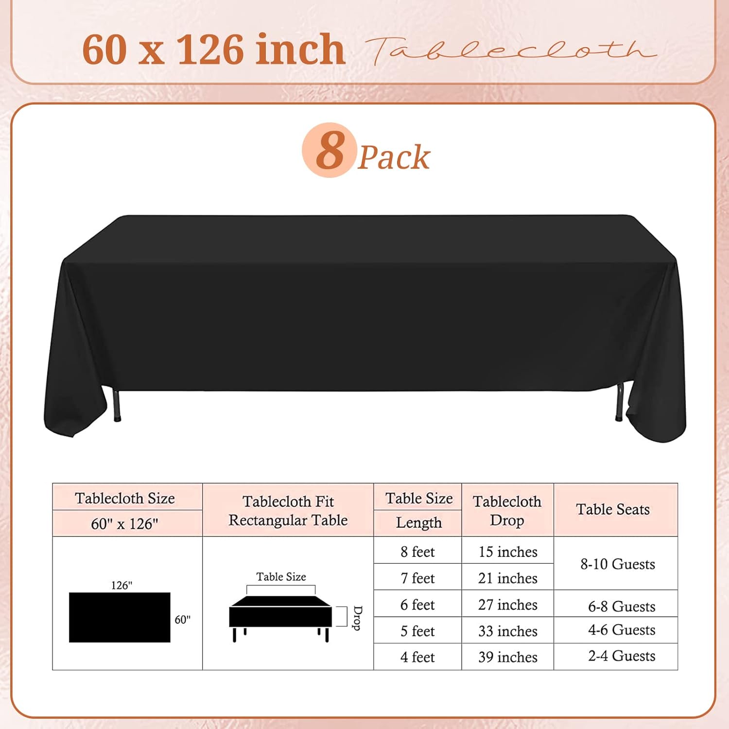 8 Pack Polyester Rectangle Tablecloth 60 x 126 Inch, Black Tablecloth Rectangle for 8 Ft Tables, Stain and Wrinkle Resistant Washable Table Cover for Kitchen Wedding Banquet Restaurant Party