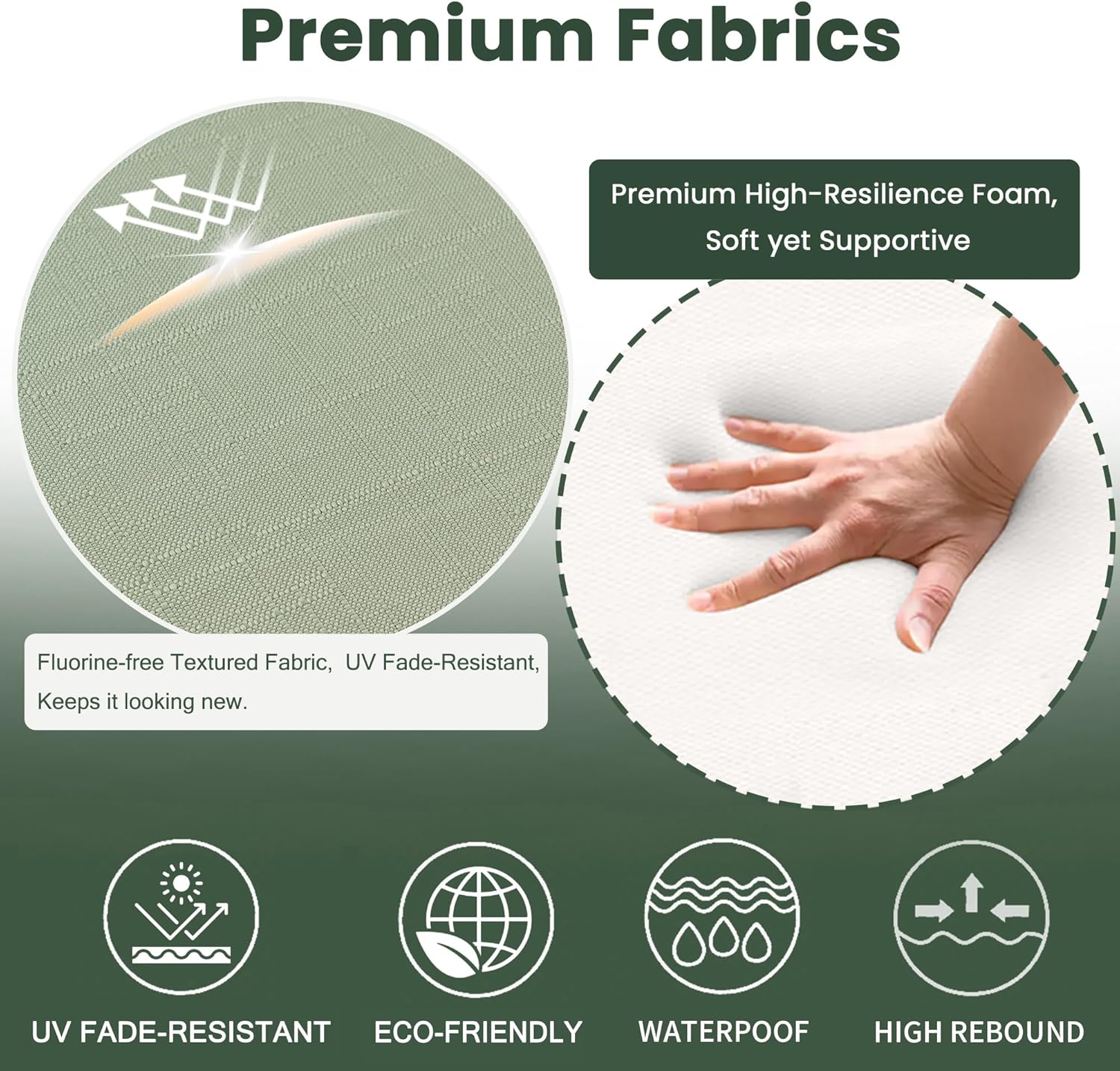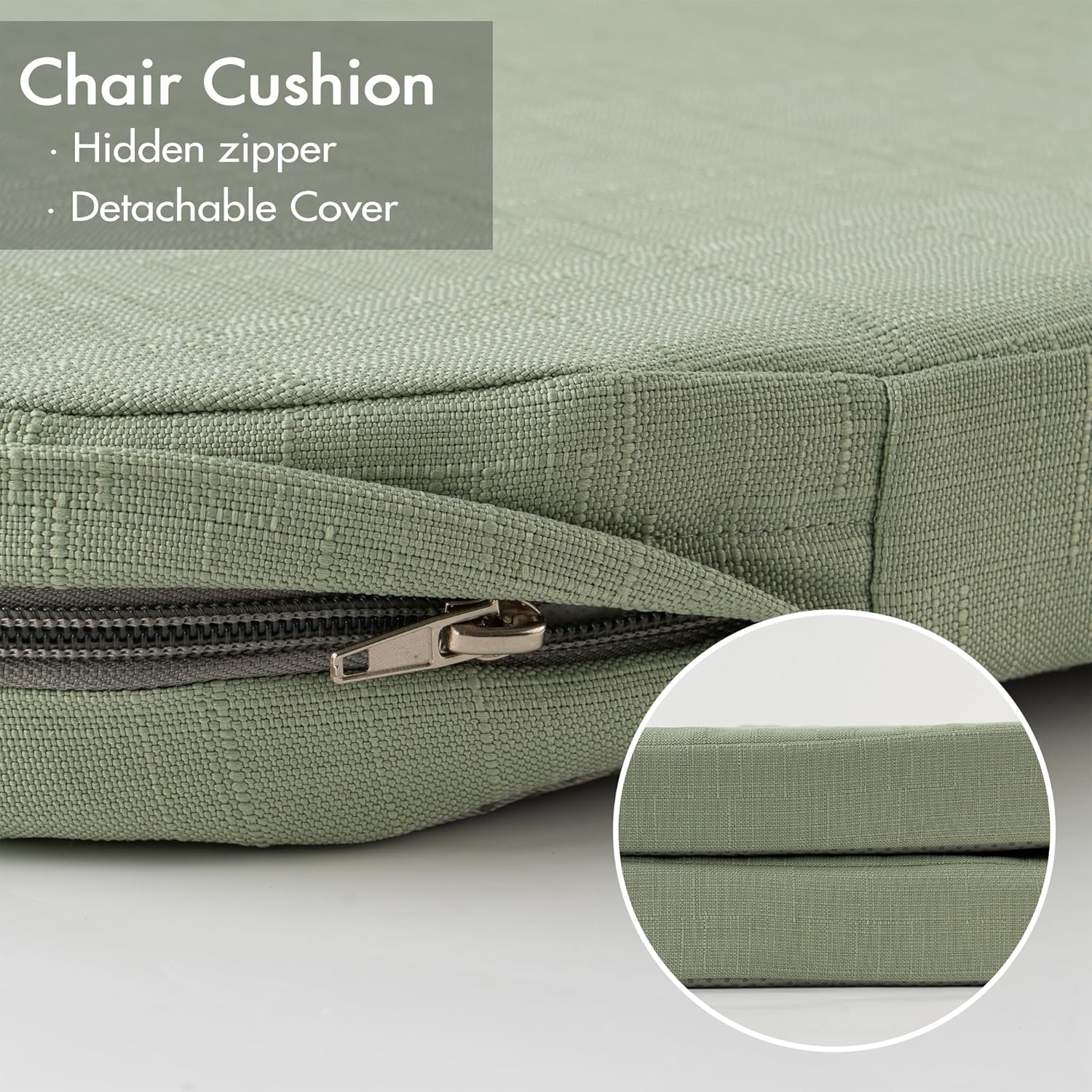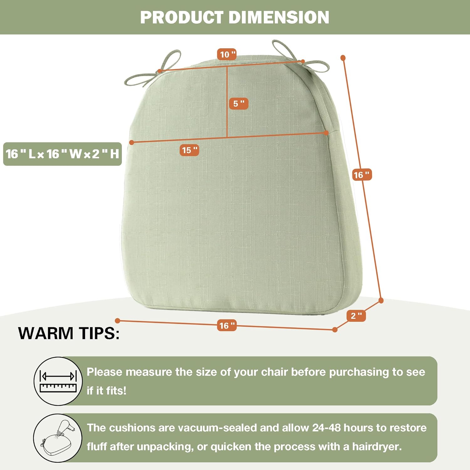 Battilo Chair Cushions for Dining Chairs with Ties, Indoor/Outdoor Kitchen Chair Pad with Non-Slip Backing, Dining Seat Cushion with Machine Washable Removable Cover, 16"x16"x2", Set of 2, Sage Green