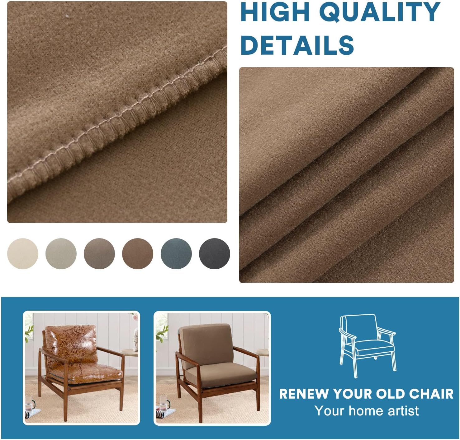 H.VERSAILTEX Fleece Chair Cover Stretch Cushion Covers for Couches and Sofas 2 Piece Thick Soft Accent Chair Cover for Mid-Century Modern Chair (Seat Cushion Cover Plus Back Cushion Cover, Camel)
