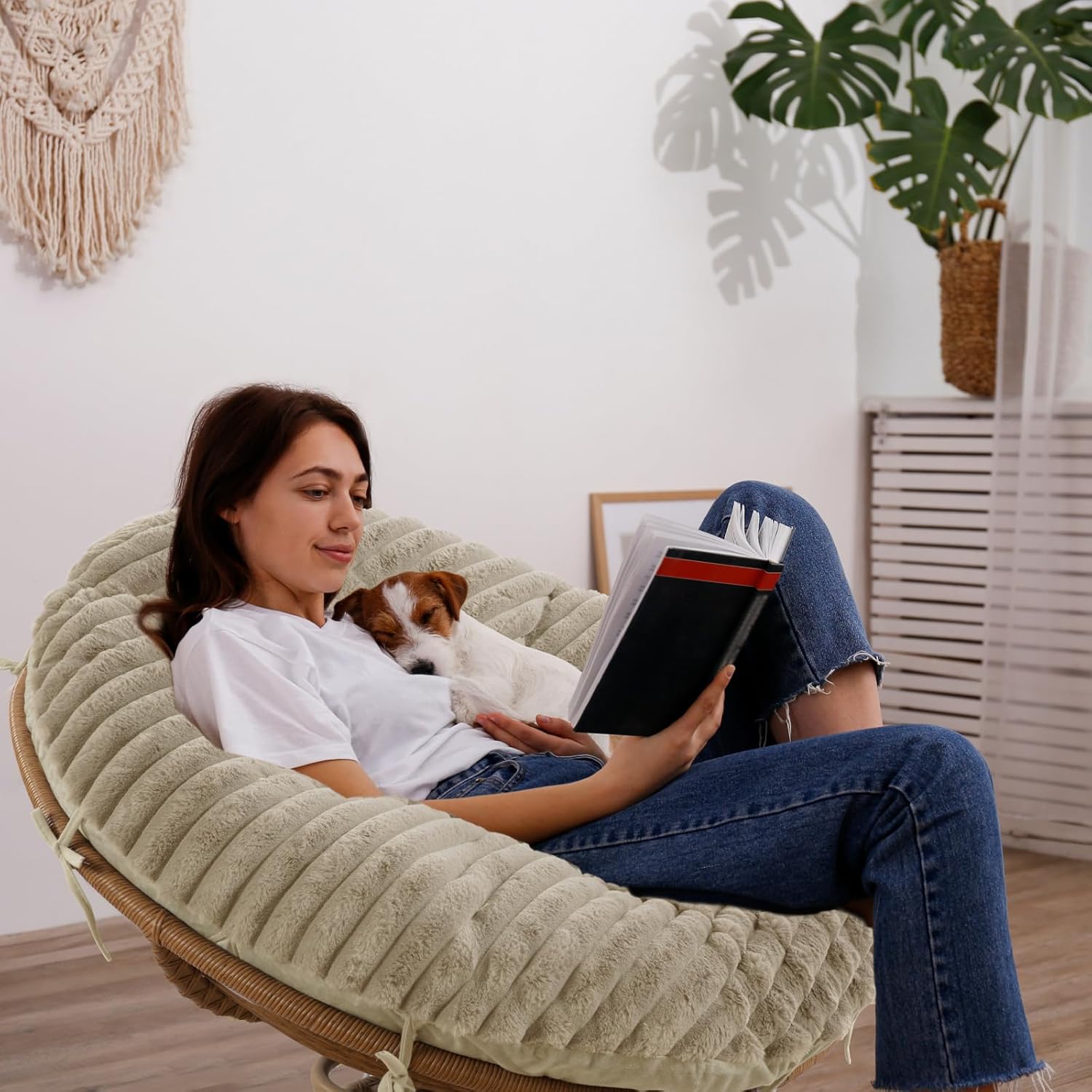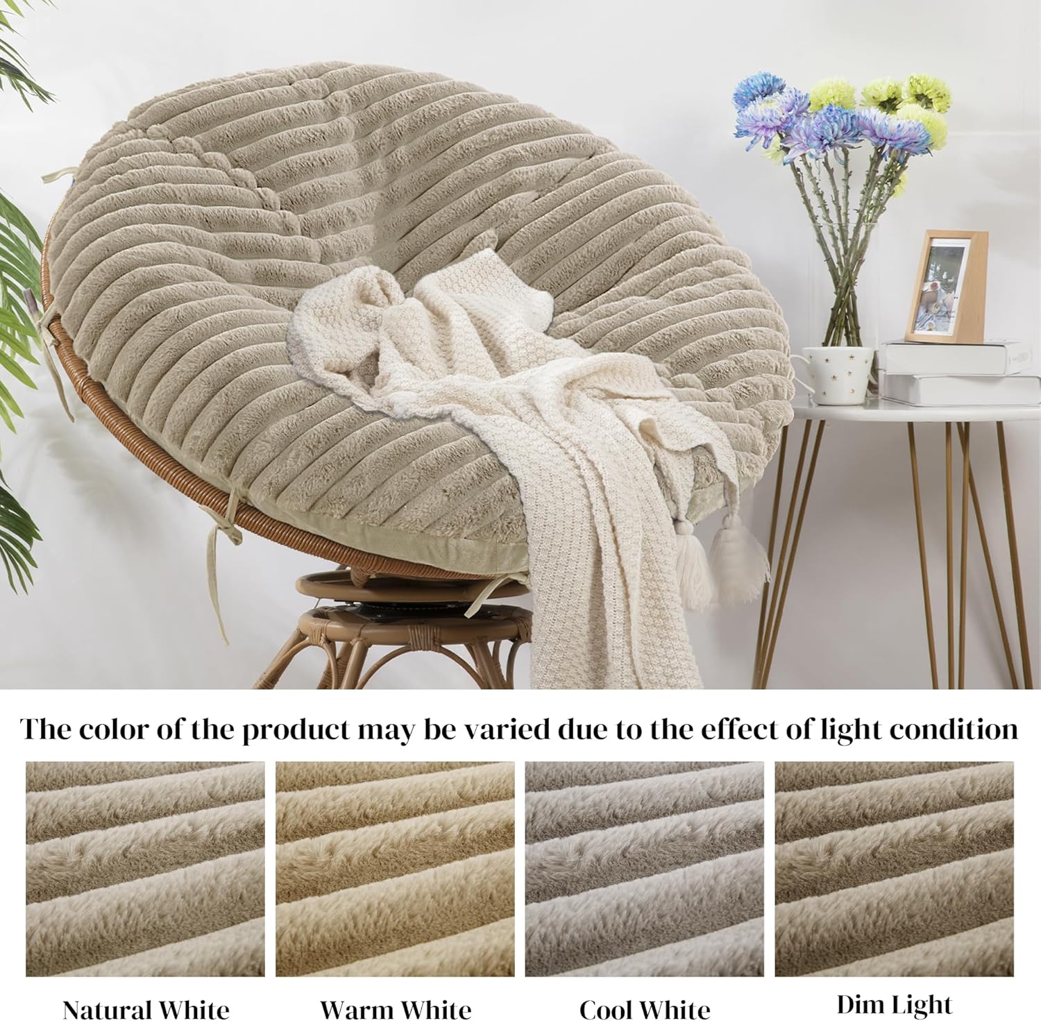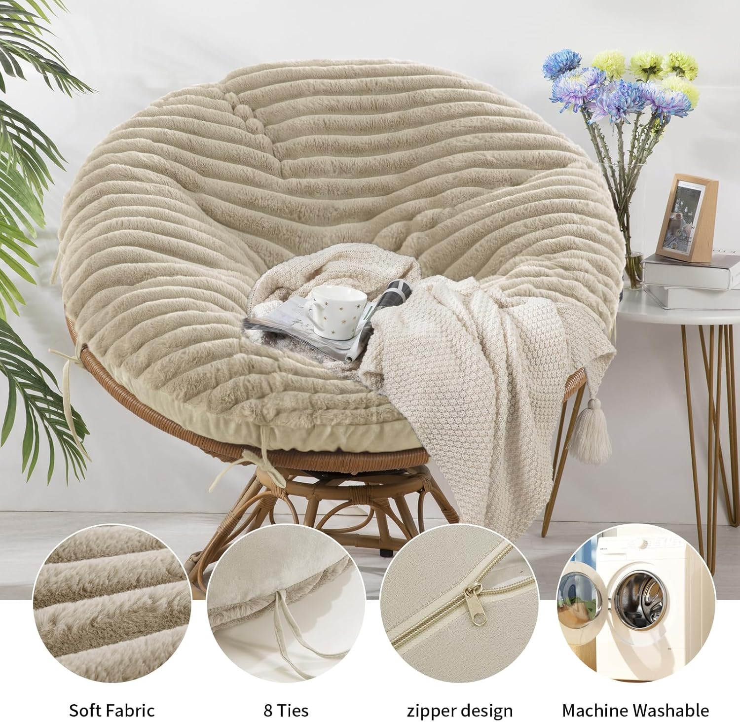 HOMBYS Fluffy Shaggy Cover for Papasan Chair Cushion, Plush Faux Fur Slipcover ONLY, (Without Cushion) Removable Soft Papasan Cushion Covers with 8 Ties, (Khaki, 55"x55")