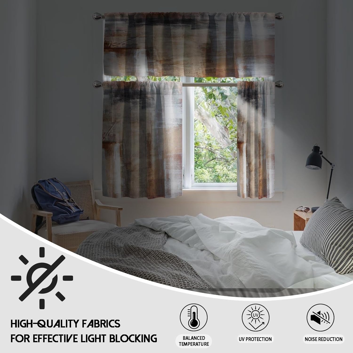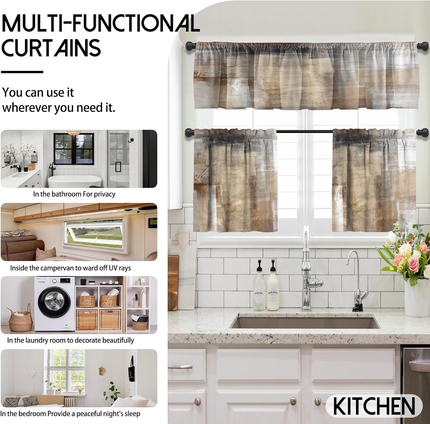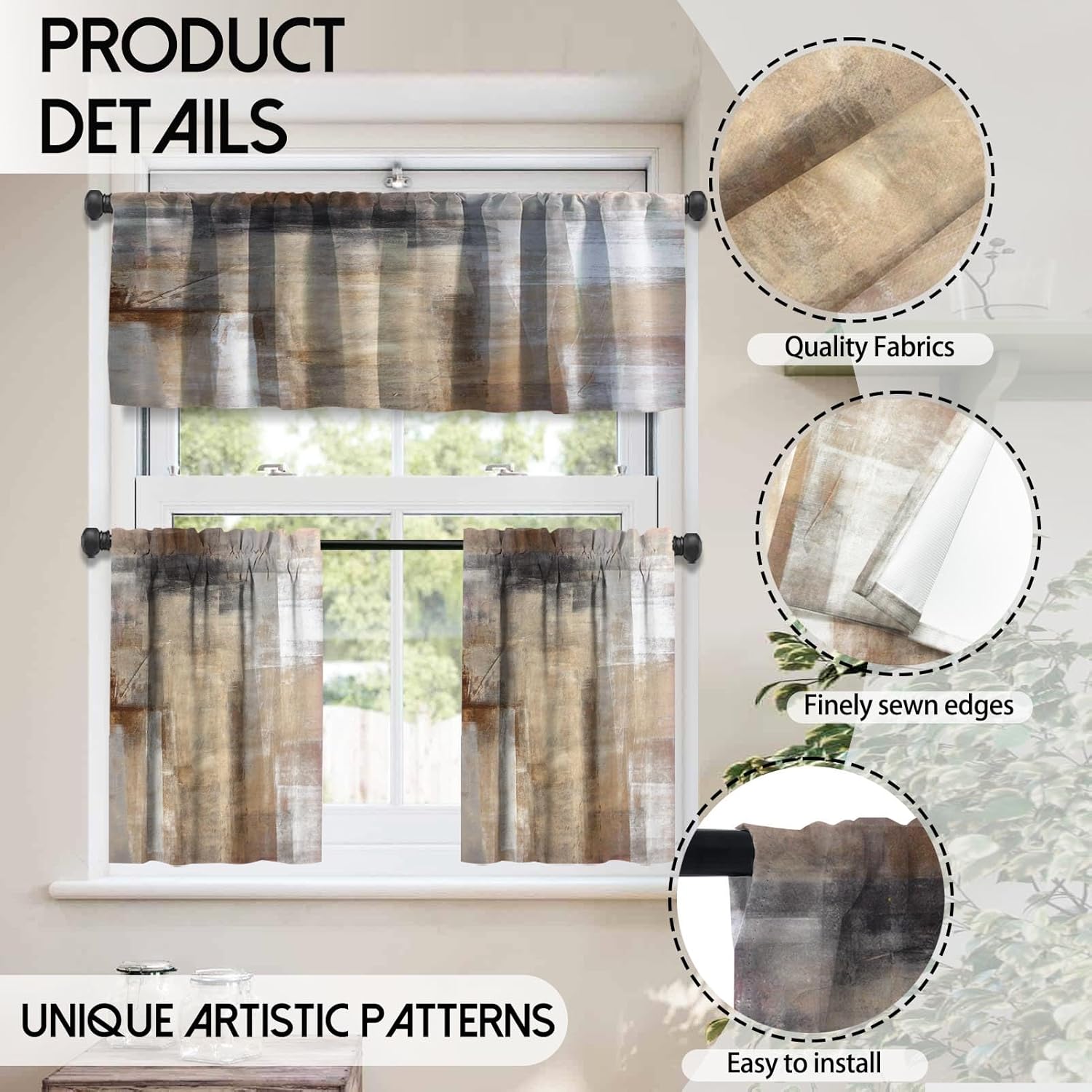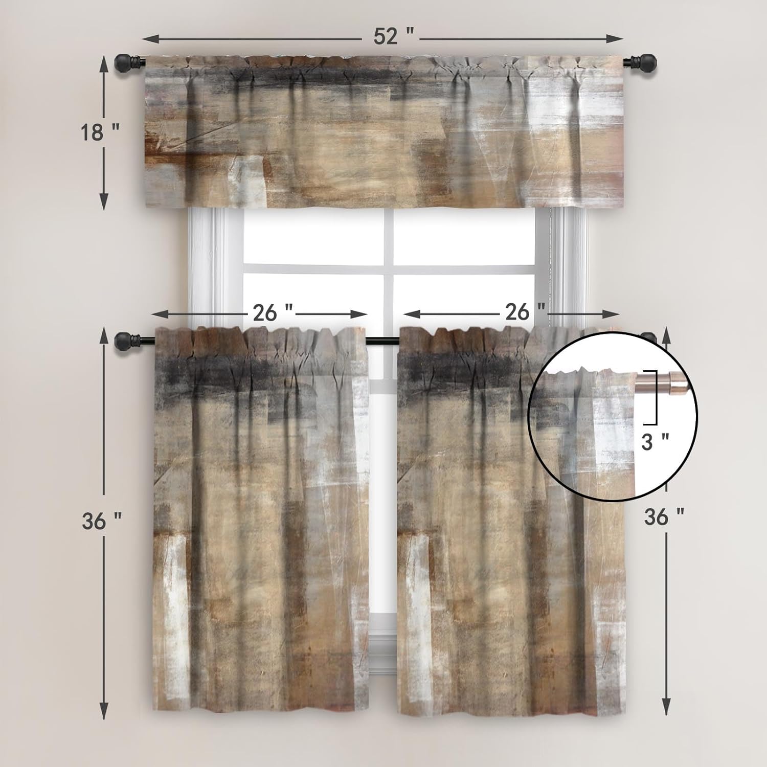 MCALK Brown Blackout Kitchen Curtains Tiers and Valances Set 3 Piece for Windows Beige Kitchen Window Curtains Set,Modern Abstract Art Valances for Living Room(36" Tiers Set)
