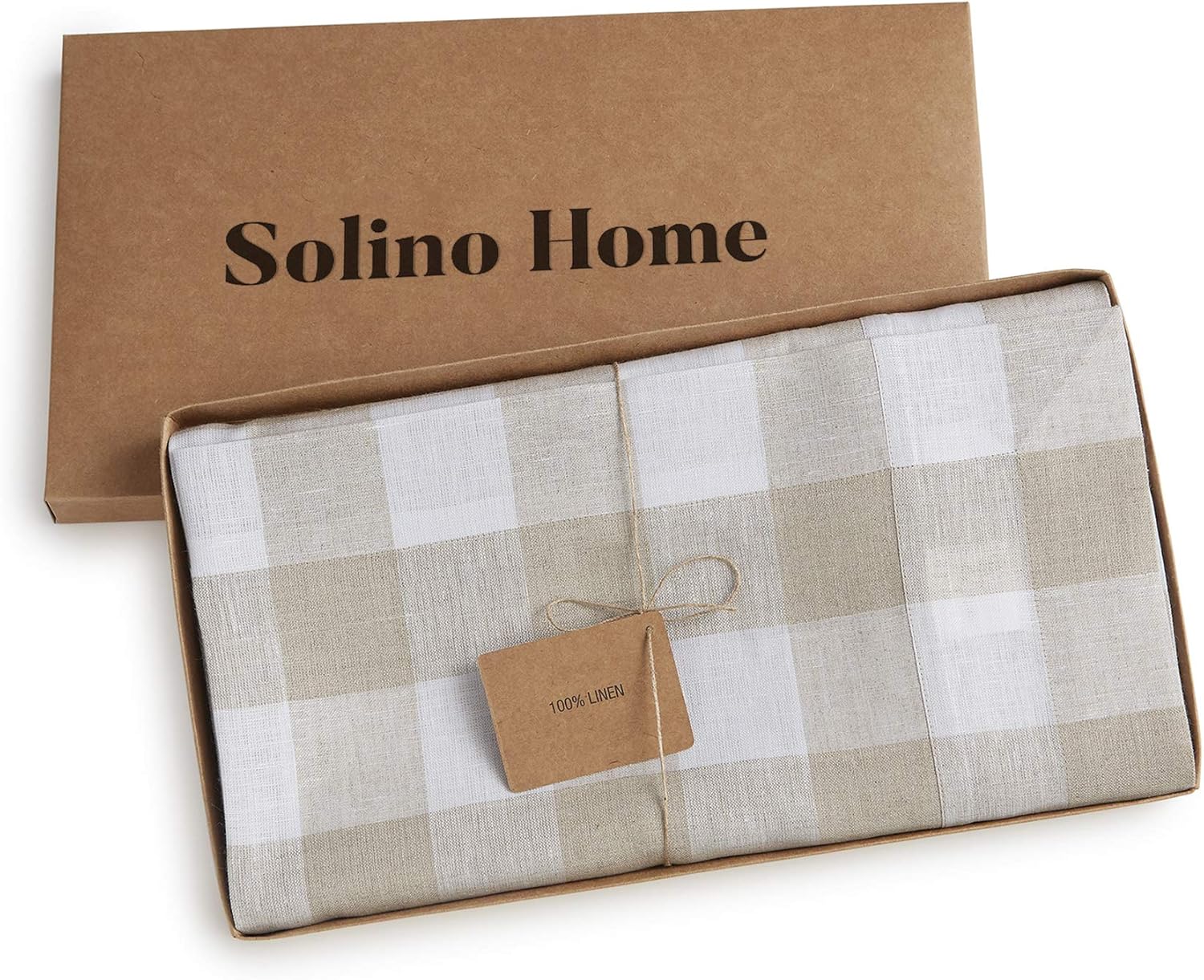 Solino Home Linen Buffalo Plaid Tablecloth 60 x 90 Inch - 100% Pure Linen Natural and White Checkered Table Cloth for Rectangle Tables - Machine Washable Tablecloth for Fall, Autumn, Thanksgiving