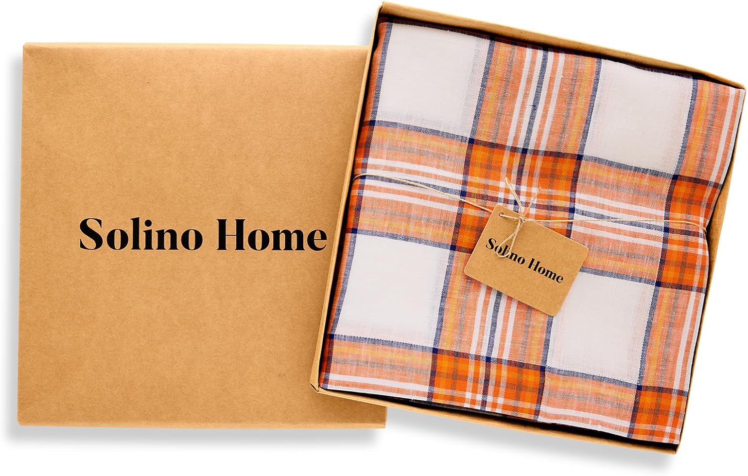 Solino Home Plaid Linen Tablecloth 60 x 108 Inch - 100% Pure Linen Orange Plaid Table Cloth for Rectangle Tables - Machine Washable Tablecloth for Fall, Autumn, Halloween, Thanksgiving
