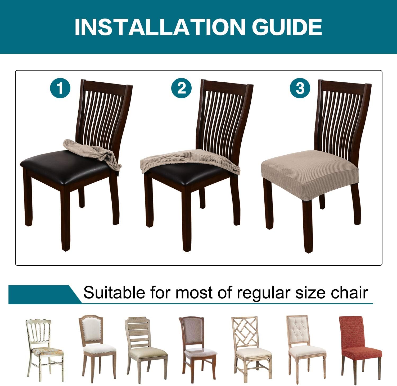 Turquoize Stretch Dining Chair Covers Seat Covers for Dining Room Chair Covers Set of 6,Removable Washable Kitchen Chair Seat Cushion Slipcovers Protector, Khaki